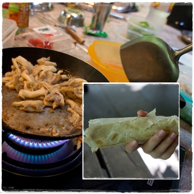 sumptuous tortilla rolls stuffed with bacon, sausages and salads.